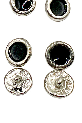 Vintage Todd Oldham Silver Plated Stud Button With Black Enamel, Set of 20