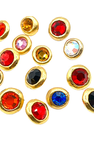1996 Vintage 24 kt Gold Plated Stud Buttons Mixed Colors of Swarovski Crystals, Set of 16