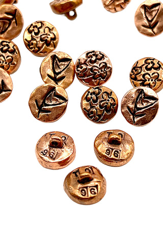 1996 Copper Plated Etched Flower Small Buttons, Set of 18