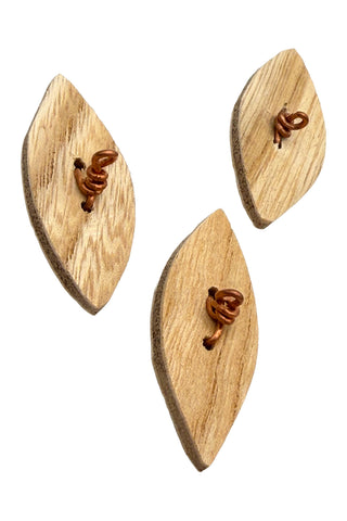 Vintage Todd Oldham Large Leaf Wood Burned Buttons, 7 Piece Set