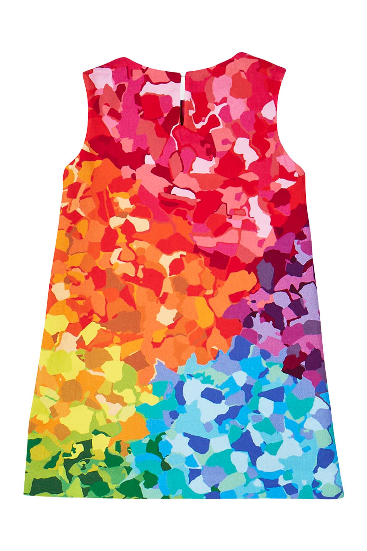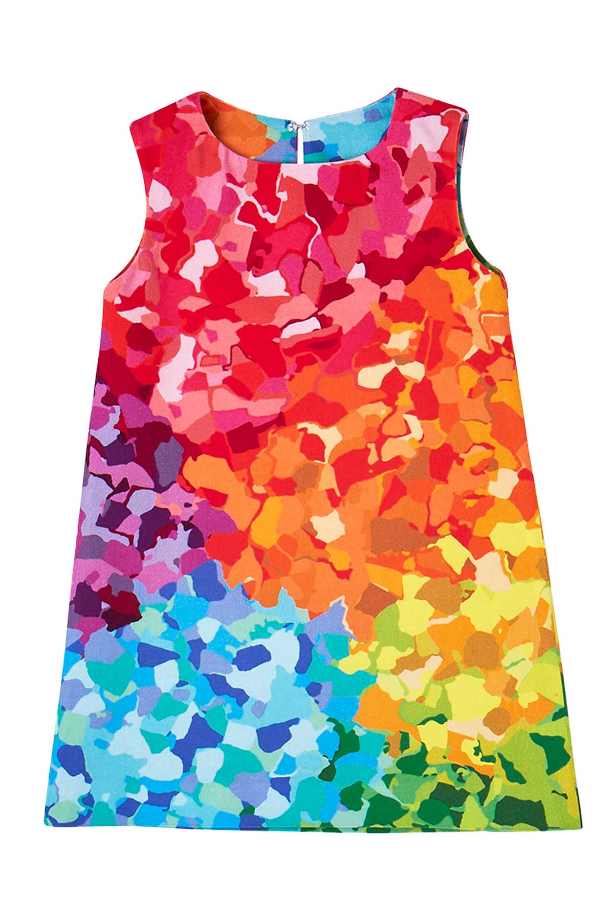 Cotton and linen blend canvas shift dress featuring wraparound "Rainbow Run" print. Developed as part of a children's brand the studio designed.
