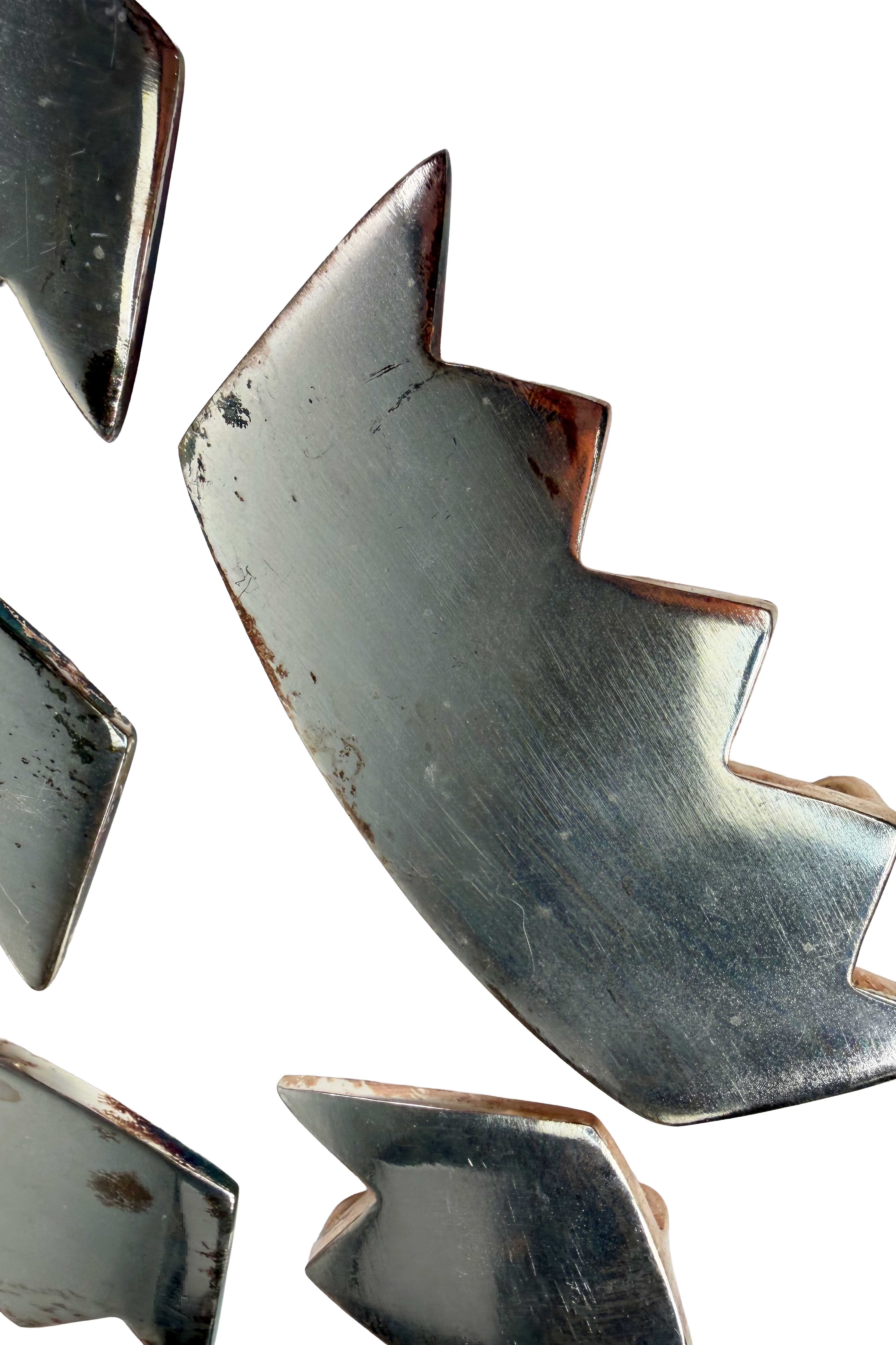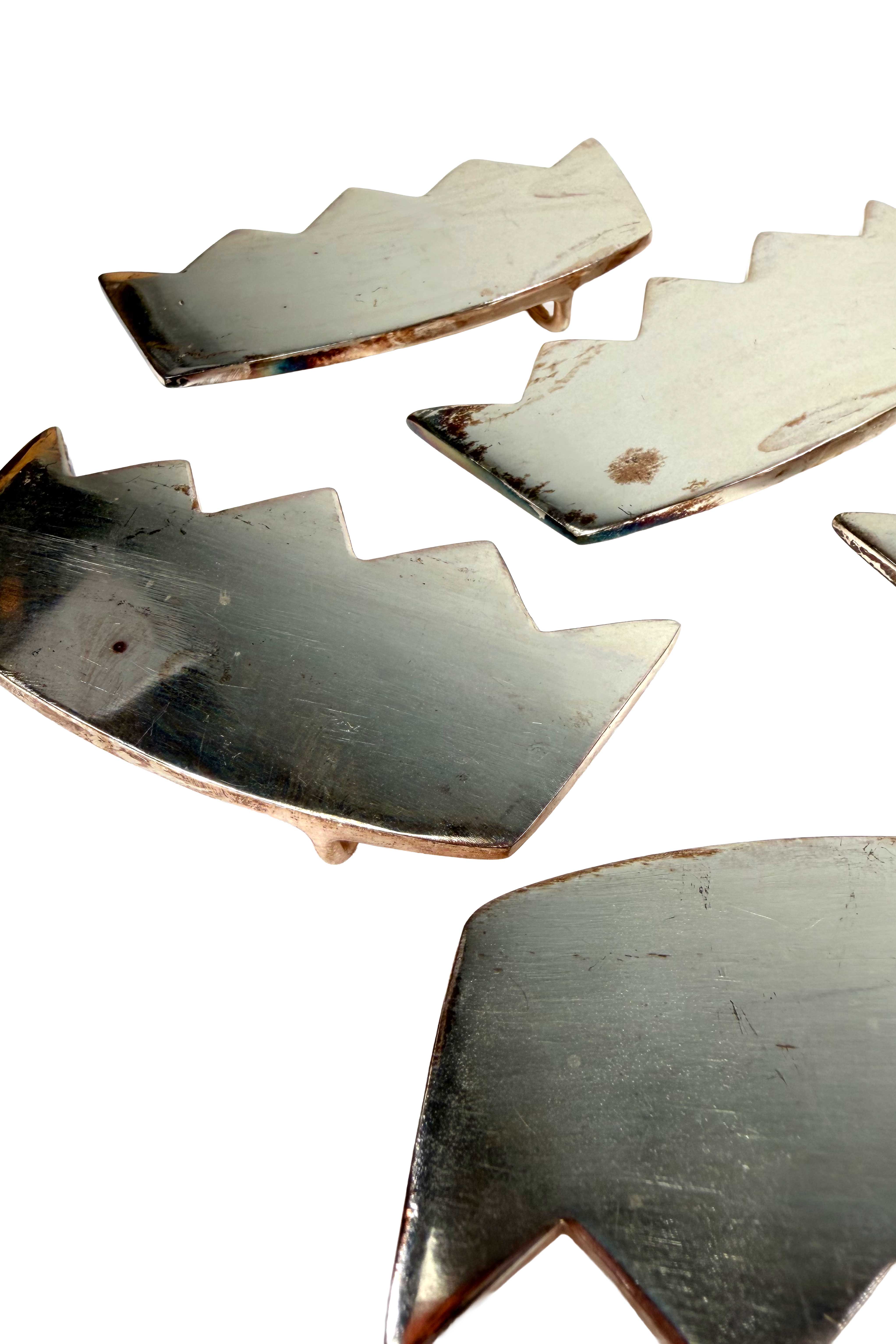 Anodized chromed white metal crown belt buckles, ready to be repurposed as drawer pulls, purse handles, or worn exactly as originally designed. Distressed look designed with slight imperfections. Graphic, sculptural, and versatile, these pieces blur the line between hardware and adornment, offering multiple lives depending on how you choose to use them.