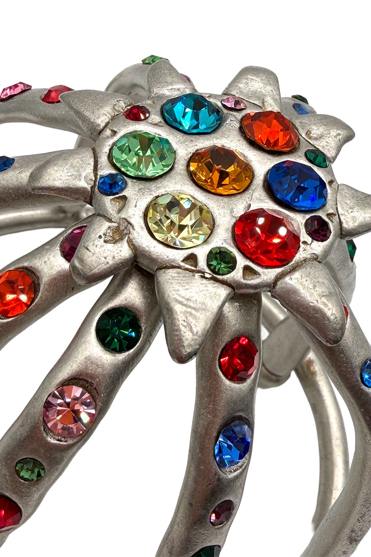 Swarovski crystal bun cover created for the Spring 1995 Collection. This sculptural hair ornament is constructed from silver-plated metal bands set with multicolored Swarovski crystals.