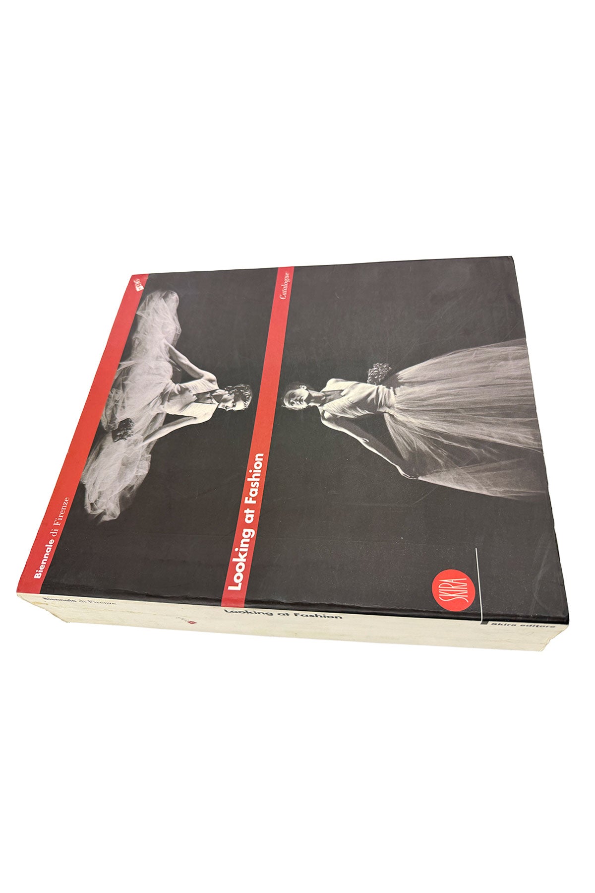 Published in 1996 for the first Biennale di Firenze, this catalogue documented the groundbreaking exhibition titled 'Looking at Fashion'. Curated by Germano Celant, Luigi Settembrini, and Ingrid Sischy, it explored the intersection between art and fashion through 20 separate exhibitions across Florence. The cover art utilizes a famous 1936 fashion photograph by surrealist artist Man Ray.