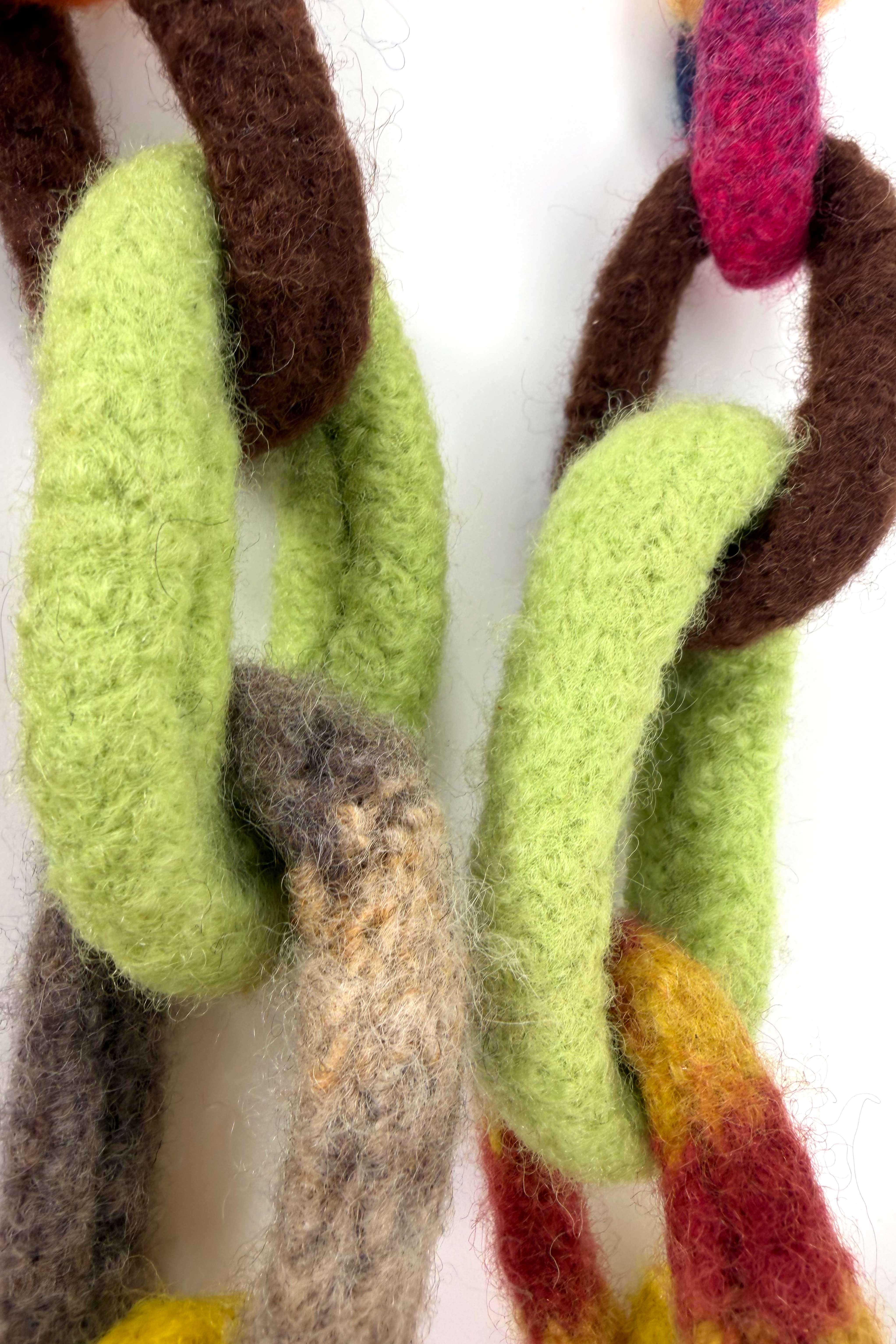 A one-of-a-kind wool chain commissioned by Todd and created by an artist and knitter. Constructed from a mix of worsted wool yarns, the piece was knitted into a continuous chain form, sealed, and then felted. This sculptural textile is tactile, substantial, and one-of-a-kind. Length forthcoming.