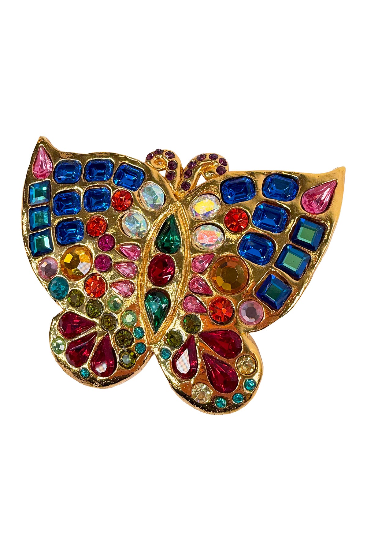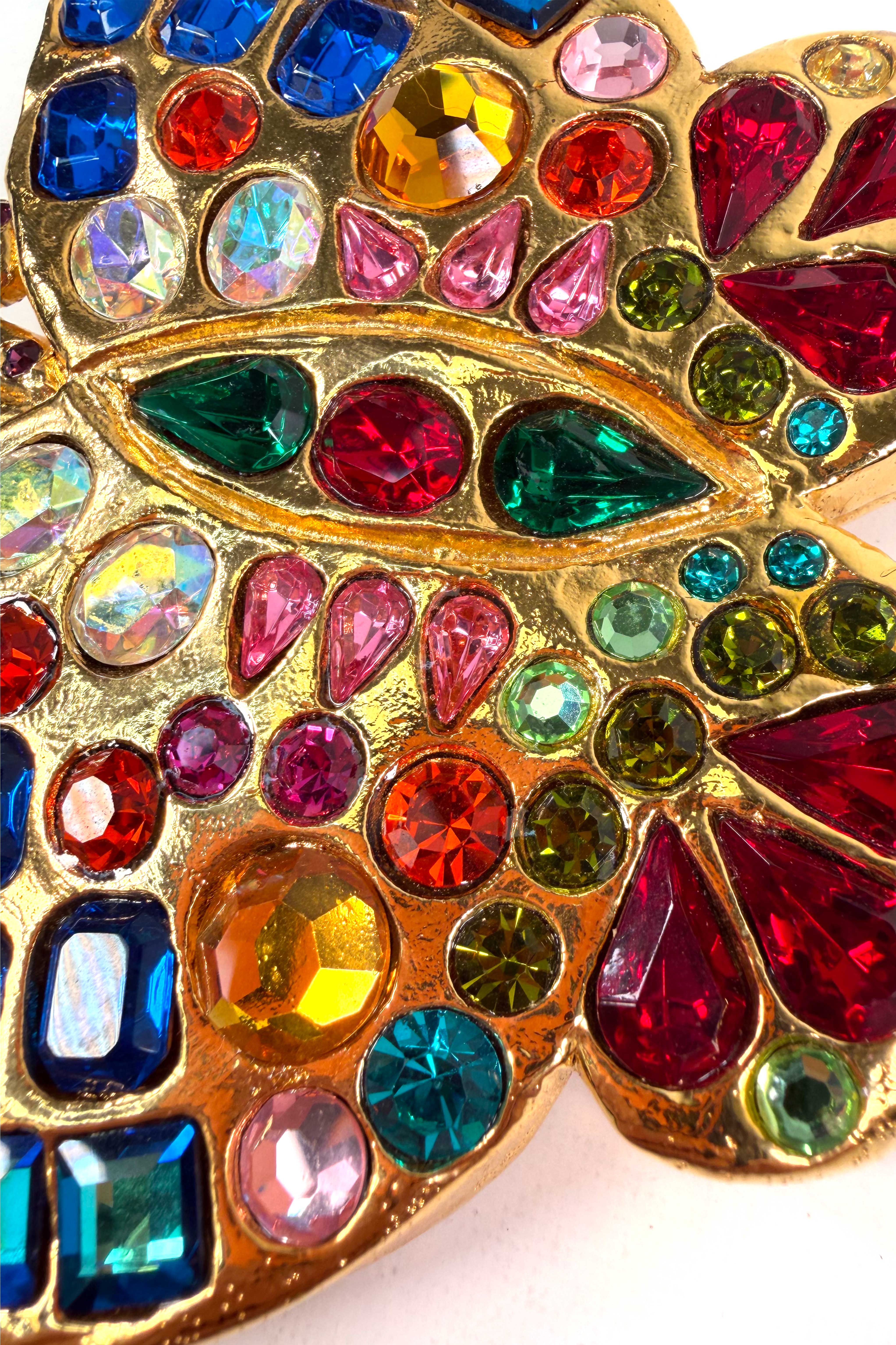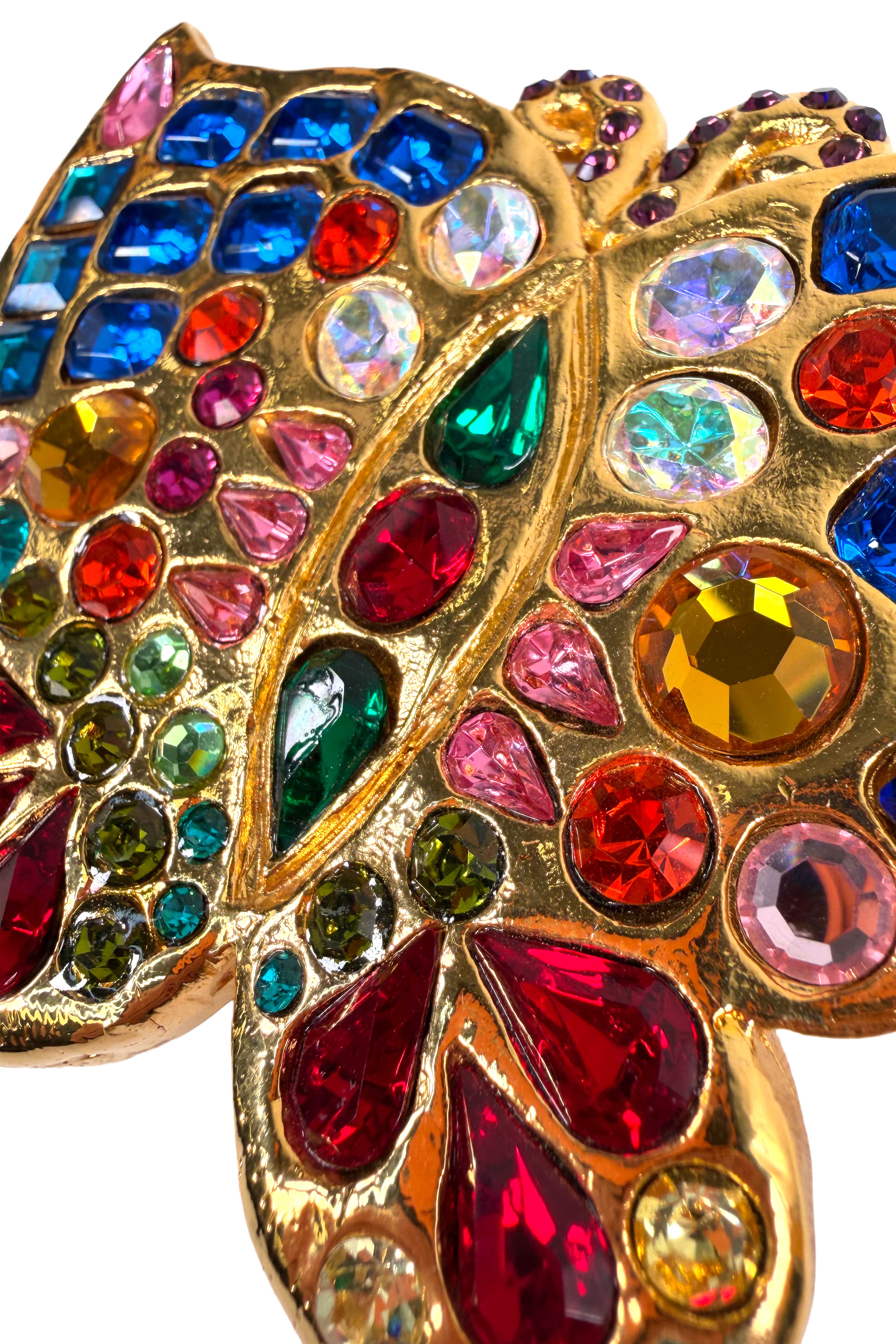 Created for the Todd Oldham Collection, Spring 1993, this piece features 24k gold plating over hand-cast white metal, accented with square Swarovski crystals.