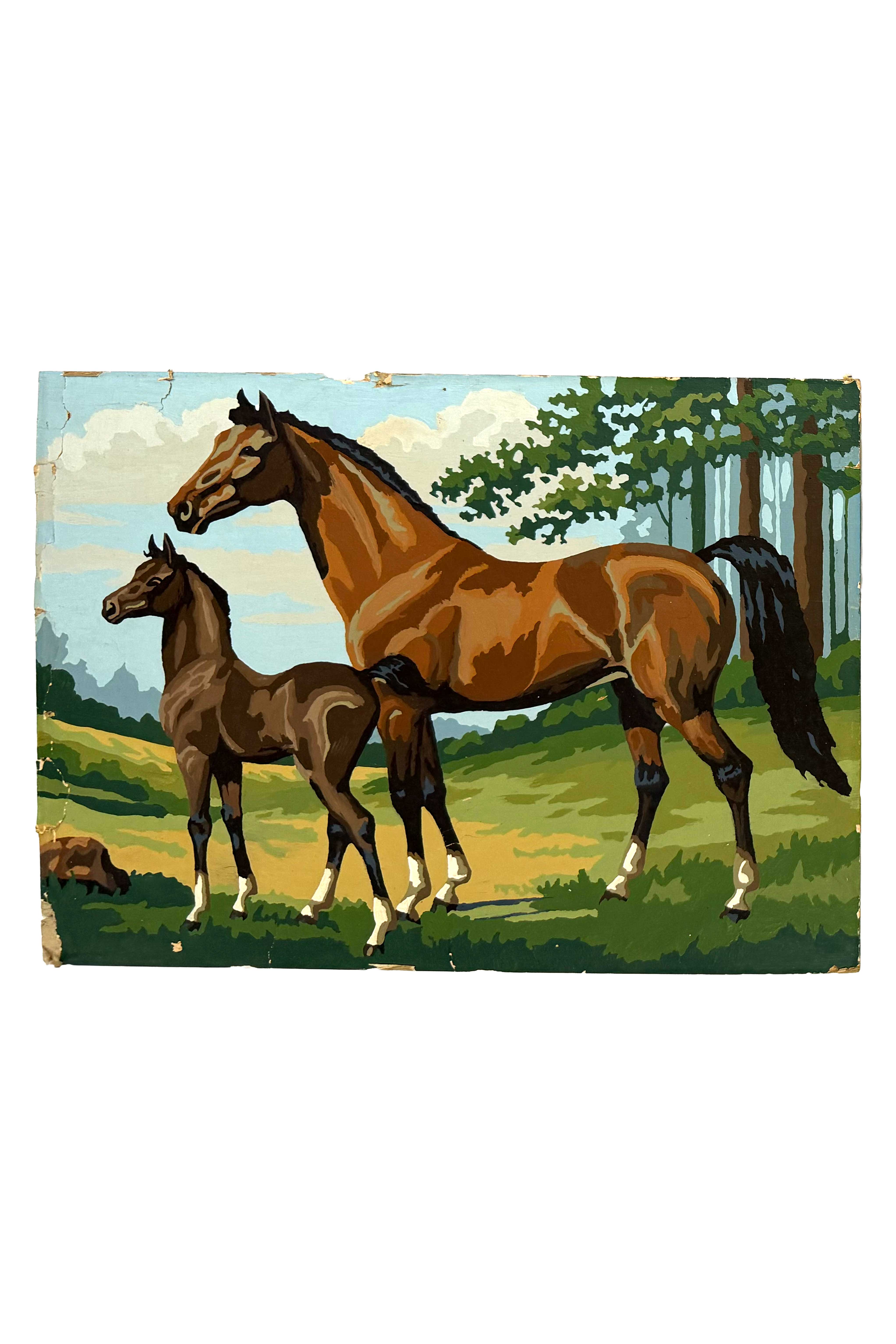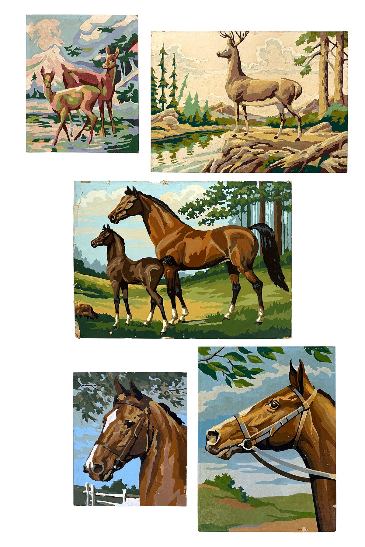 A curated group of five vintage paint-by-number paintings collected beginning in the 1980s. Dating from the 1940s through the 1970s, these works come from Todd's private collection and span a range of themes, sizes, and compositions. Grouped loosely by subject matter, they offer a compelling look at mid-century visual culture and domestic creativity.