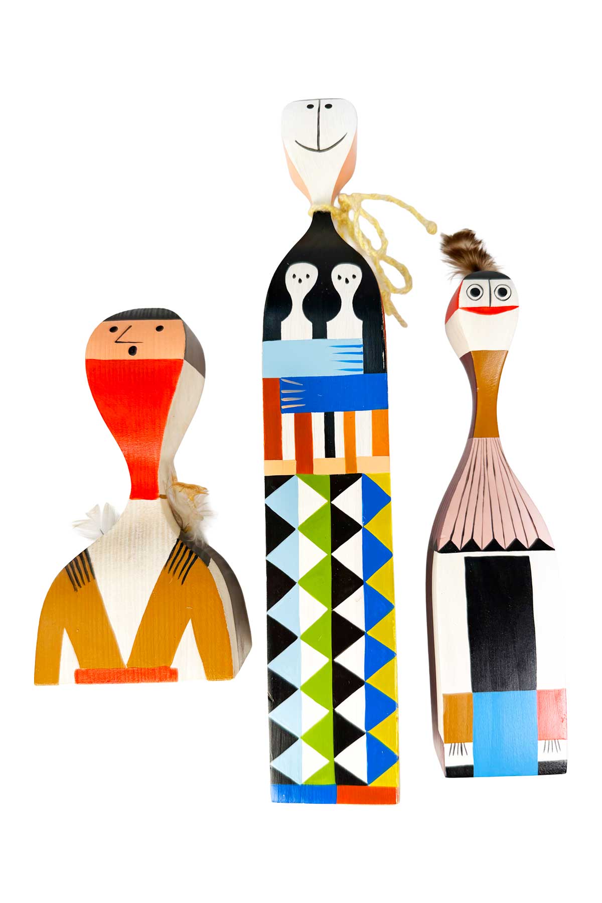 Alexander Girard dolls, originally designed in the 1950s and later reissued by Vitra in the 2000s. Faithfully produced from Girard’s archival designs, these figures capture his signature folk-inspired forms, bold color sensibility, and graphic charm.