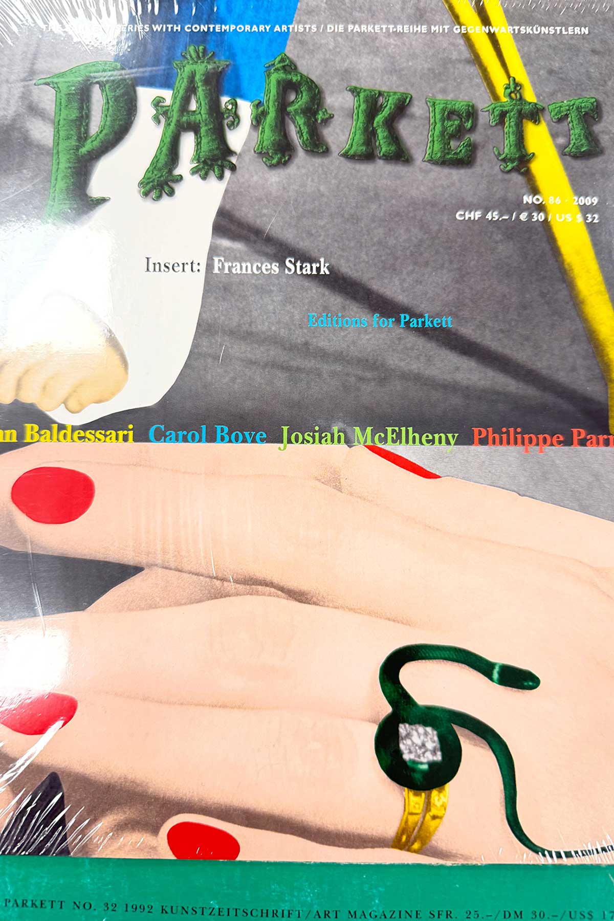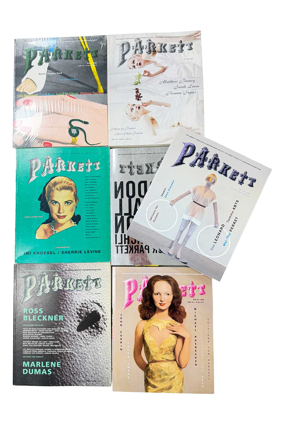 A set of seven vintage Parkett magazines featuring John Currin, Sherrie Levine, Matthew Barney, and many other influential contemporary artists.